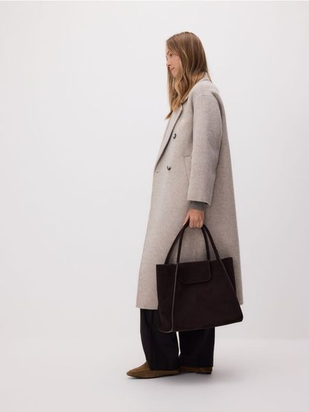 Zamszowa torebka shopper z saszetką – ciemnobrązowy