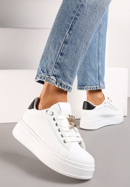 Biało-Czarne Sneakersy z Imitacji Skóry na Platformie z Ozdobą z Cyrkonii Imbercca