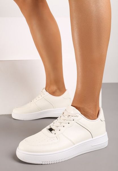 Beżowe Sneakersy z Perforacją na Nosku Elletia