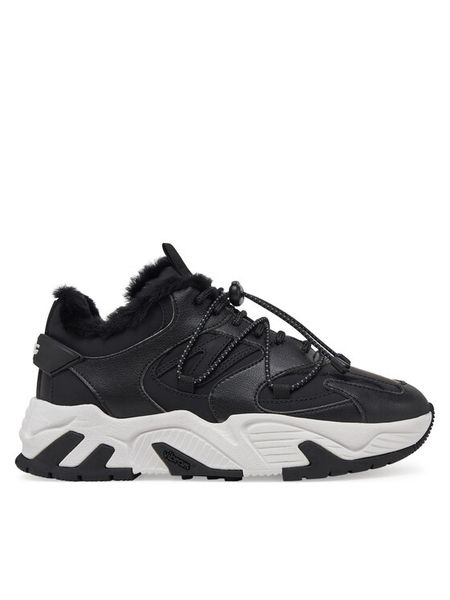 Czarne Sportowe Sneakersy z Imitacji Skóry z Ozdobnymi Paskami Vilirea