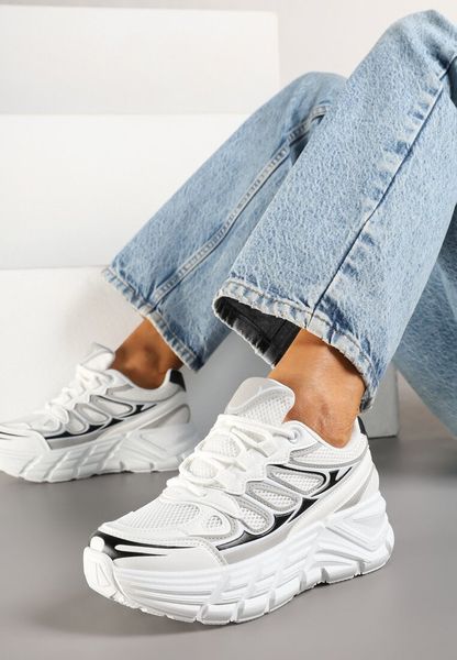 Białe Sneakersy Streetwearowe na Tłoczonej Platformie Tertewia