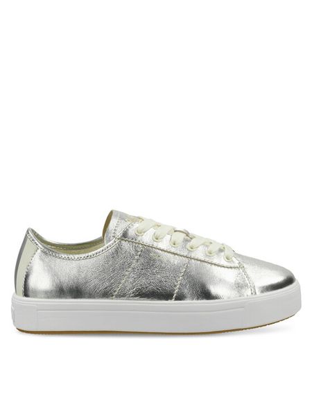 Srebrne Sneakersy z Metalicznym Błyskiem i Podwójnym Sznurowaniem Piniara