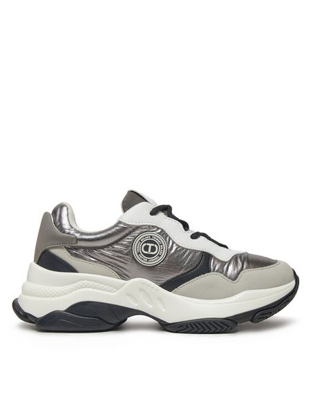 Srebrne Sneakersy z Metalicznym Błyskiem i Podwójnym Sznurowaniem Piniara