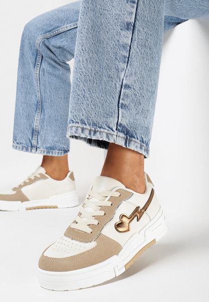 Beżowe Sneakersy na Grubej Podeszwie z Ozdobnymi Wstawkami i Sercem Wellesa