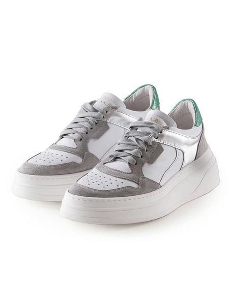 Anna Morellini Skórzane sneakersy „Netina” w kolorze biało-szaro-srebrnym rozmiar: 37