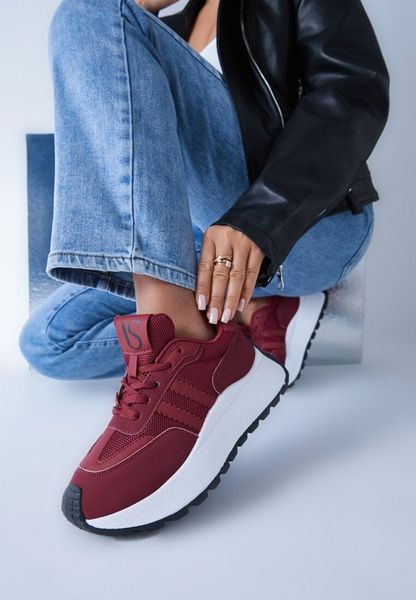 Bordowe Chunky Sneakersy Vices na Platformie z Okrągłym Detalem Sedvira