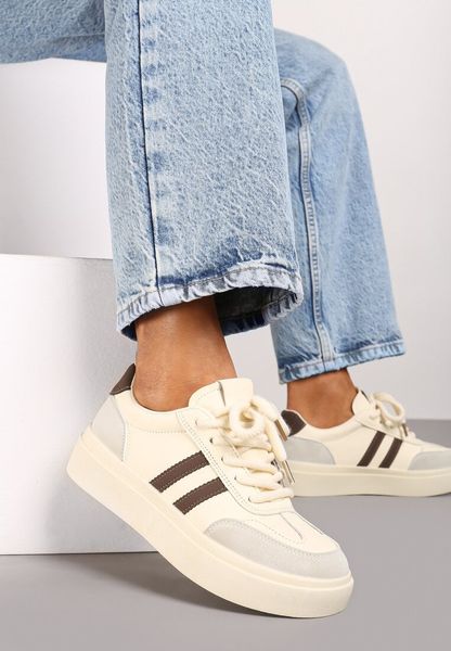 Beżowo-Brązowe Sneakersy na Grubej Podeszwie z Paskami i Sznurowaniem Tiariel