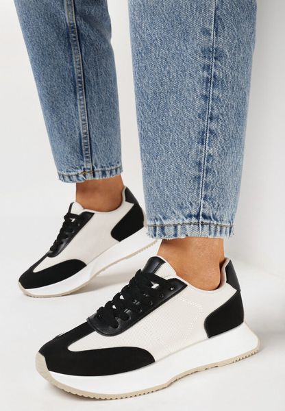 Biało-Czarne Sneakersy na Grubej Podeszwie z Ozdobnymi Przeszyciami i Sznurowaniem Filmia