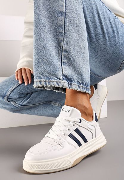 Biało-Niebieskie Sneakersy na Płaskiej Podeszwie Ozdobione Paskami Noraria