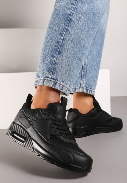 Czarne Sneakersy z Podeszwą Typu Air z Ekoskóry Sznurowane Ozarae