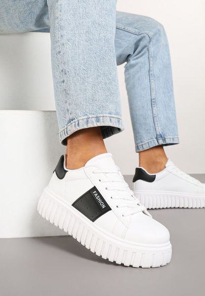 Białe Sneakersy na Tłoczonej Platformie Ozdobione Pasem Eleandelle