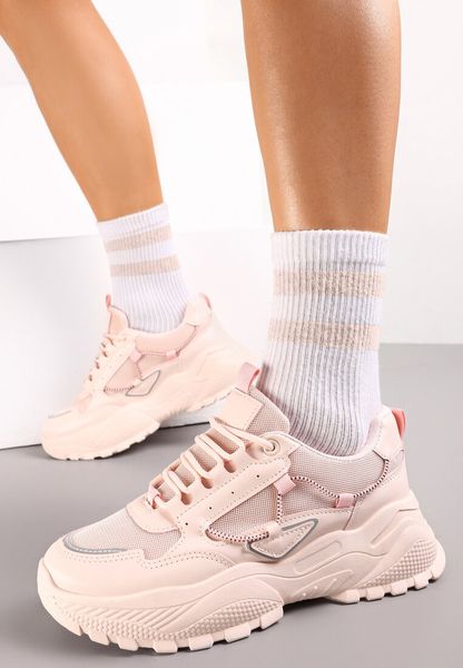 Różowe Sneakersy na Tłoczonej Podeszwie Zdobione Sznurkiem Wokół Pellesti