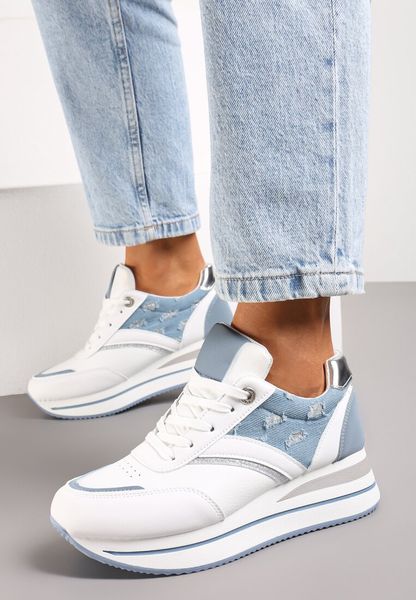 Biało-Niebieskie Sznurowane Sneakersy z Ekoskóry z Błyszczącymi Wstawkami Fiviara