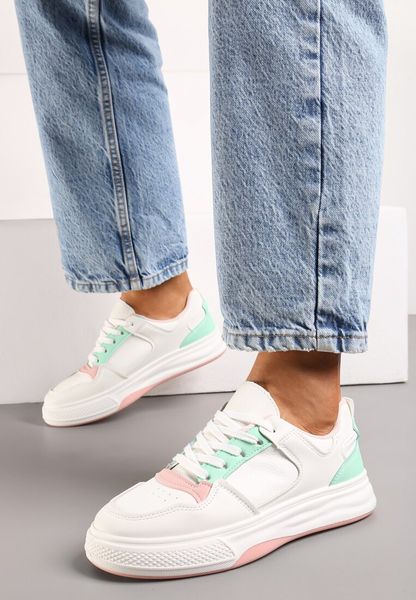 Biało-Różowe Kolorowe Sneakersy z Brokatową Wstawką i Sznurowaniem Livora