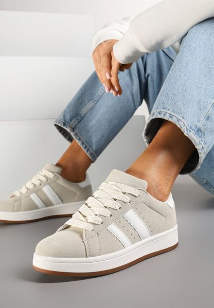 Beżowe Sneakersy z Ozdobnymi Paskami Doloreth