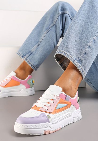 Biało-Różowe Sznurowane Sneakersy z Licznymi Wstawkami z Ekoskóry Gwendias