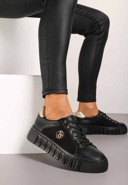 Czarno-Złote Sznurowane Sneakersy Vices na Platformie z Tłoczeniem i Metaliczną Aplikacją Lavfedi