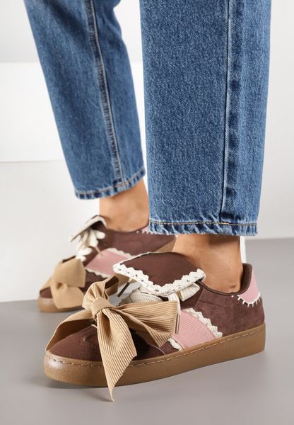 Brązowe Sneakersy na Grubej Podeszwie z Wywiniętym Językiem i Kokardą Ellisare