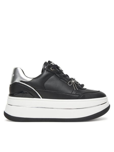 Czarne Sportowe Sneakersy z Imitacji Skóry z Ozdobnymi Paskami Vilirea