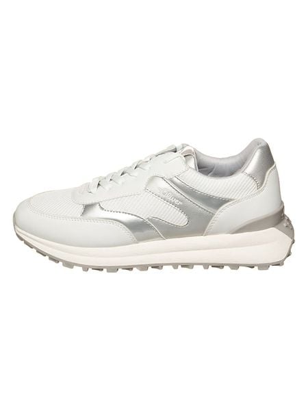 Biało-Srebrne Sneakersy w Streetwearowym Stylu z Siateczkowymi Zdobieniami Dorelline