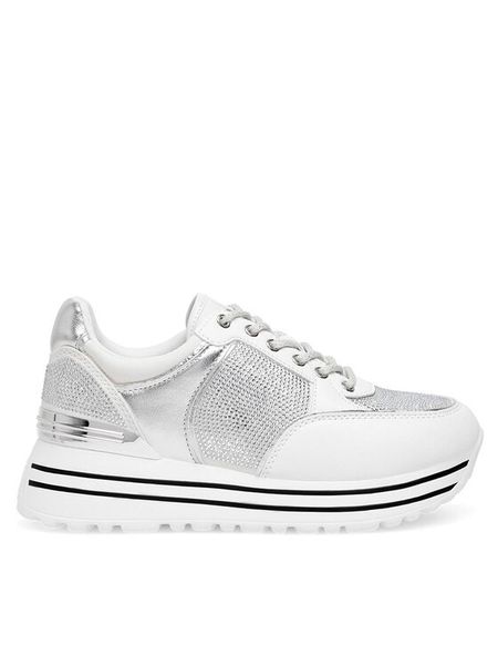 Białe Sznurowane Sneakersy na Grubej Podeszwie z Błyszczącymi Wstawkami Nithirela