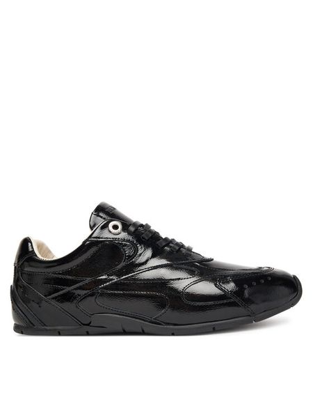 Czarne Sportowe Sneakersy z Imitacji Skóry z Ozdobnymi Paskami Vilirea