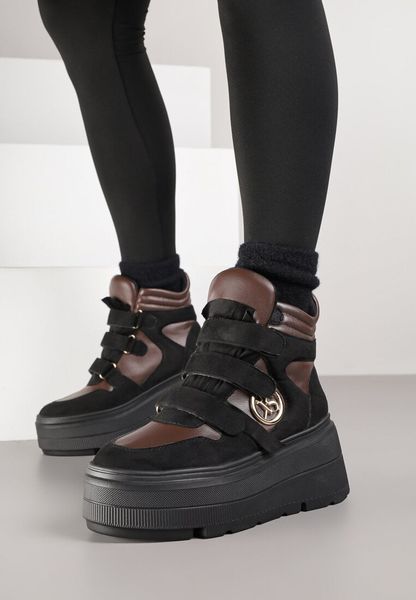 Czarno-Brązowe Botki Vices w Stylu Sneakersów na Platformie Afirriva