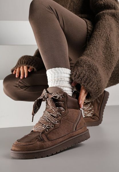 Brązowe Sneakersy Ozdobione Sznurówkami w Geometryczny Wzór Avoslia