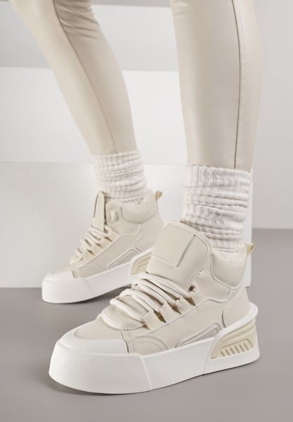 Beżowe Sneakersy na Grubej Tłoczonej Podeszwie z Metaliczną Wstawką Alanelis