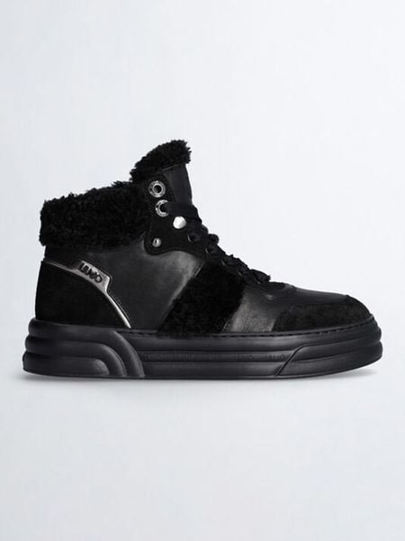 Czarne Płaskie Sneakersy z Wysoką Cholewką Ozdobione Misiami 3D i Futerkiem Teminita