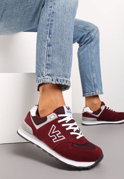 Bordowe Sznurowane Buty Sportowe z Naszywką z Boku Koriala