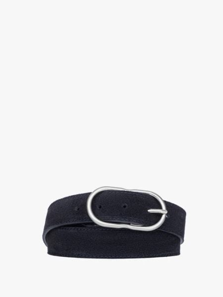 Czarny welurowy pasek damski ze srebrną klamrą