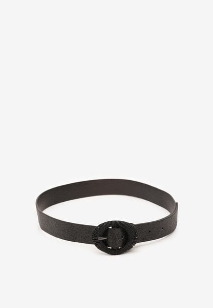 Czarny Pasek Ozdobiony Brokatem i Geometryczną Klamrą Senelis
