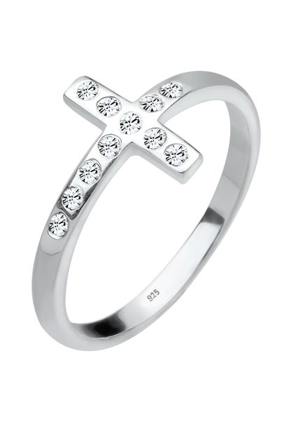 Elli Damski krzyżyk z kryształkami ze srebra próby 925 Pierścionki 1 ct