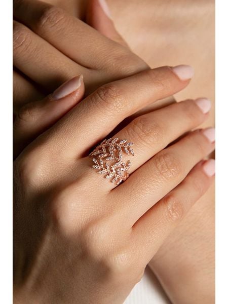 – materiał: srebro Sterling próby 925- powłoka: w kolorze różowego złota- rodzaj kamienia: cyrkonia- kolor kamienia: bezbarwny- rozmiar: elastycznyWskazówka: Zdjęcie produktu w powiększeniu.