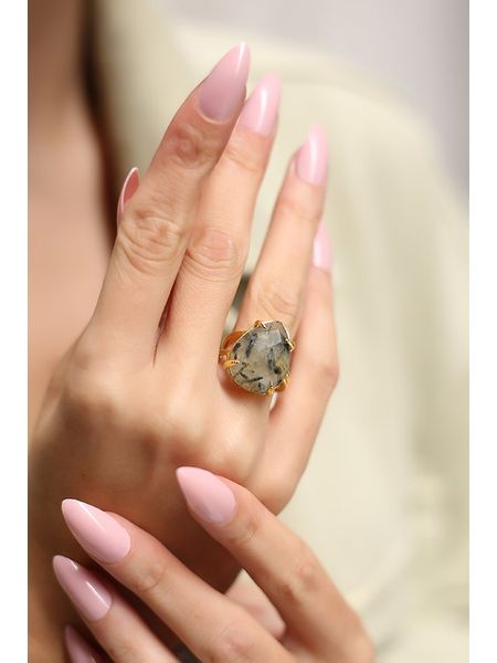 Pierres delicates Pozłacany pierścionek z prehnitem rozmiar: onesize