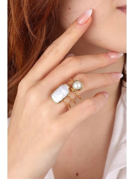 Pierres delicates Pozłacany pierścionek z masą perłową rozmiar: onesize