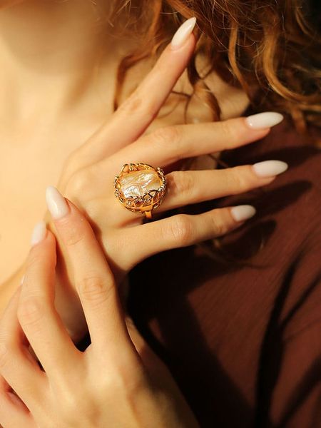 Pierres delicates Pozłacany pierścionek z masą perłową i cyrkoniami rozmiar: onesize
