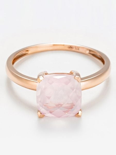– materiał: 9-karatowe różowe złoto próby 375- rodzaj kamienia: różowy kwarc – kolor kamienia: jasnoróżowy Wskazówka: Zdjęcie produktu w powiększeniu.