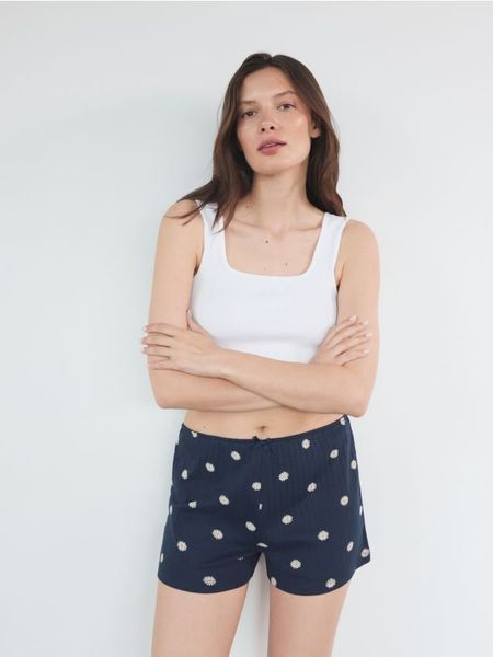 Piżamowe szorty o swobodnym kroju, wykonane z bawełnianej dzianiny.