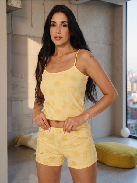 Piżama dwuczęściowa na ramiączkach z motywem cytryny – żółty