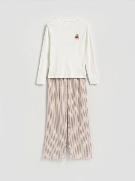 Dwuczęściowa piżama o swobodnym kroju, wykonana z dzianiny z modalem.