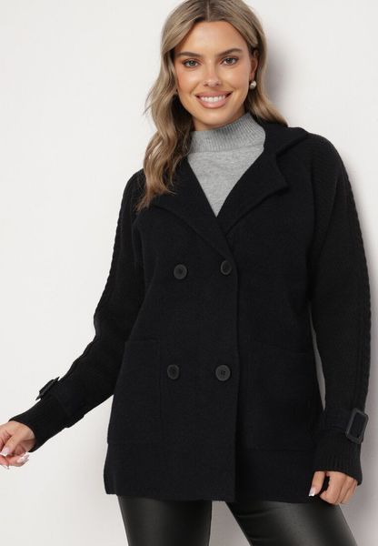 Czarny Płaszcz Dwurzędowy z Bawełną i Ściągaczami Ilifra