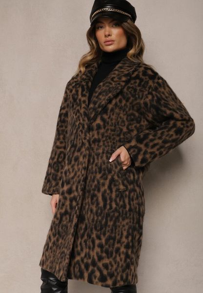 Brązowy Panterkowy Płaszcz Dwurzędowy Pesaltia