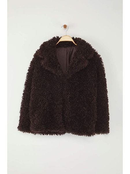 trendyol Płaszcz pluszowy w kolorze ciemnobrązowym rozmiar: S