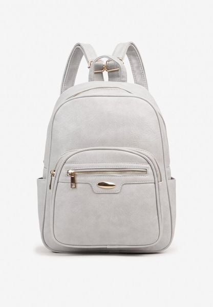 Szary Plecak z Ekoskóry na Regulowanych Szelkach z Kieszonkami i Złotymi Detalami Ojahella