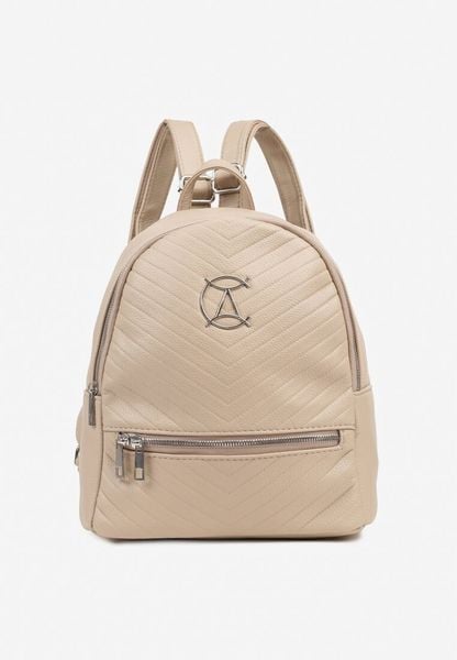 Beżowy Casualowy Plecak Ozdobiony Metalicznym Logo i Pikowaniem Jaloedi