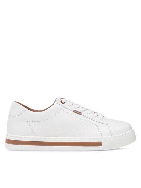 Białe Półbuty w Stylu Loafersów z Perforacją Drobnymi Cyrkoniami i Klamrą Keryth
