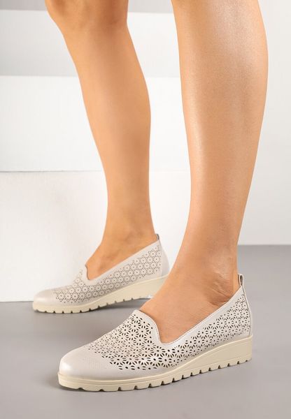 Beżowe Półbuty na Koturnie ze Skórzaną Wkładką i Ażurową Cholewką Arivos