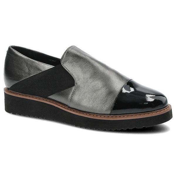Półbuty damskie Lamelia, wsuwane z lakierowanym elementem i na płaskiej podeszwie, czarno-szare, 39C817